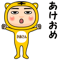 寅(虎・トラ)のタイツを着た、かあさん(カアサン)の年末年始・年賀状スタンプです!2022年の干支の寅をモチーフにした特別なスタンプで新年のご挨拶を。
