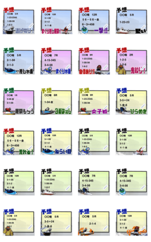 大好評!ボートレース(競艇)の予想を書き込めるメッセージスタンプ第3弾です!予想を書き込んでレースを盛り上げよう! 現在この商品は一部のスマートフォン版LINE 10.3.0以上のトークルームでのみ使用できます。動作環境の最新情報はヘルプをご確認ください。irohani より発売