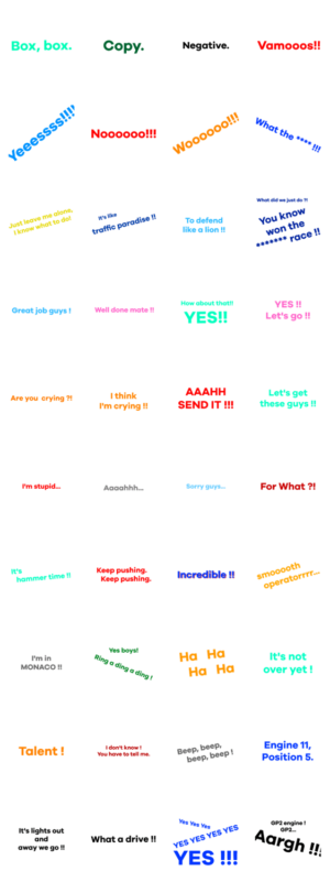 F1のチームラジオをスタンプにしました。田辺 より発売