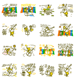 音楽好きな動物と人間たちは、どんな時もいつも仲良しになってしまうスタンプです。Art cetta より発売