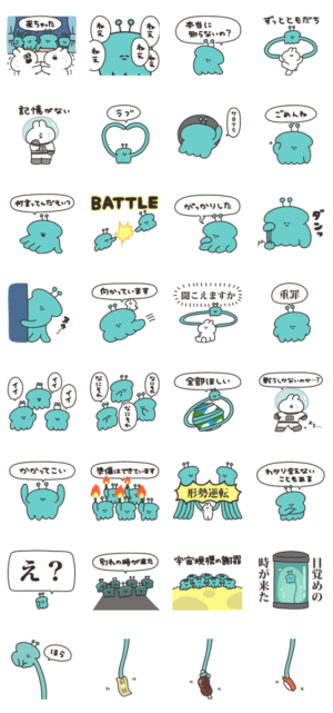 こんな可愛いエイリアンなら会ってみたいと思わせるスタンプです。癒されますね。