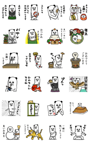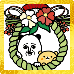 パンダのおじさんが新年をお祝いしてるよ。 年末年始はパンダのおじさんであけおめしよう。まめぞう より発売