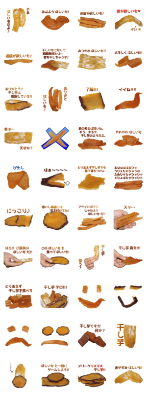 干し芋の写真で作った実写スタンプです。甘さ広がるほしいもをどうぞ。さつまいも、サツマイモ、和菓子。スイーツ、おやつ、お菓子、デザート、ホシイモ。実写食べ物。竹野チコ より発売