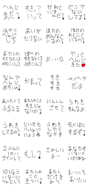 メンヘラ、地雷女、カップル、夫婦、彼氏、彼女、旦那、嫁、5さい、子供の字、子ども、面白い、家族、しつこい、ギャグ、ネタ、診断、依存、じゃないもん、好き、束縛