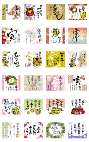 カッコイイ文字のお正月スタンプです。良いですね!24種類ダウンロードできるのは良いですね!