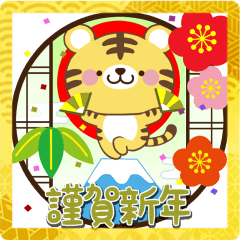 虎の絵がキュートで微笑ましい。良い年を迎えることが出来そうなスタンプですね