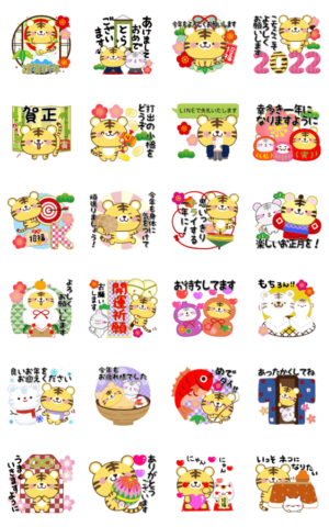 2022年の干支の寅さんの年末年始に使えるスタンプです。たくさん幸せが訪れますようにレムリン より発売
