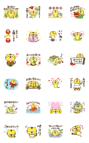 新年のご挨拶など冬に使えるフレーズがいっぱい! かわいい動きで幅広い世代の方が使えます。 年賀状の代わりにも是非! 干支は寅!虎! トラ!