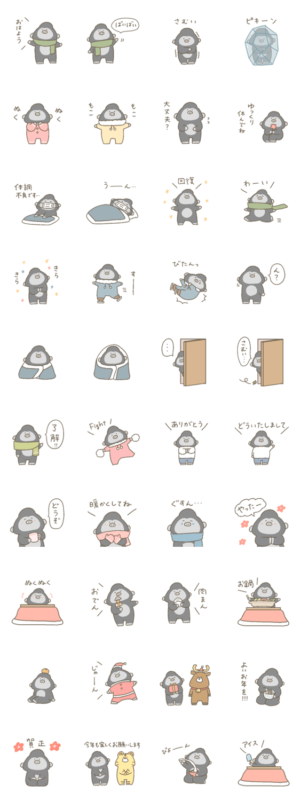 可愛いゴリラのウルゴリくんの冬スタンプです。クリスマス/正月/ゆるい/日常会話猫原のし より発売