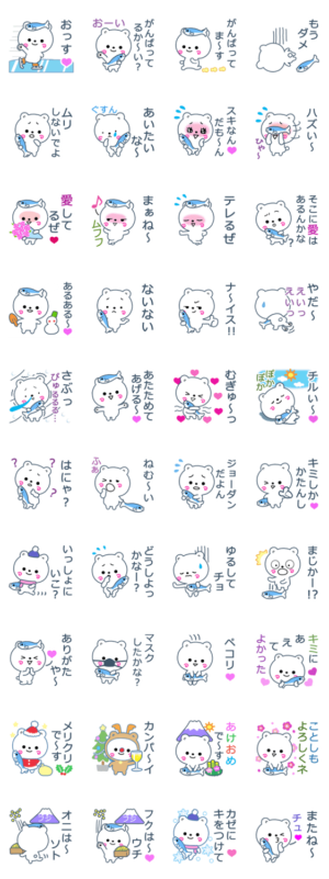 かわいい白熊の日常会話のスタンプです。クリスマス、正月、節分、豆まき、ほか。EBISEN より発売
