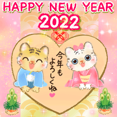 ハートがいっぱいな年末年始をお過ごし下さい♡2022年、皆様の健康と幸せをお祈りして♡ 作:ラブリーダム /家族/友達/年賀状/冬/猫/ネコ/神/かわいい/トラ/応援/合格studio LOVEREEDOM より発売