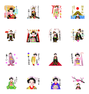 お正月の舞妓さんが動きます!はんなりと美しいスタンプですよ。