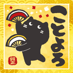 墨で書かれた黒猫の「ふでねこ(筆猫)」& 「筆文字」で伝えよう!!年末年始バージョン!!