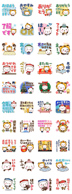 寅年を可愛らしく彩るスタンプです。種類が豊富で年末年始のイベントで心強いですね。