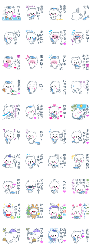 可愛い白くまの鹿児島弁の日常会話のスタンプです。熊本、宮崎、佐賀、大分、長崎、福岡の方々も使えるかも。よろしくね。EBISEN より発売