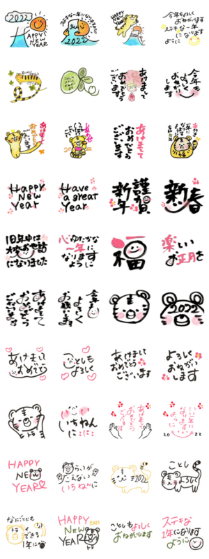 優しいタッチで癒されるスタンプです。素敵な一年になりそうな温かさを感じます。