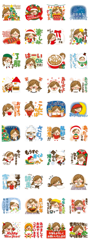 かわ主婦第61弾は年末年始にぴったりなかわいい女の子のクリスマス・お正月・年賀などずーっと使える冬スタンプです!クリスマス、新年の挨拶にぜひお使いください!