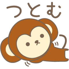 ツトムさんの可愛いさるの名前スタンプ。つとむ君、勤や勉くん、務や孜さん、また努や努武さんなど。力勇や力さん、勇や労や功さん、勲や強さんなど、Tutomuさん専用の猿