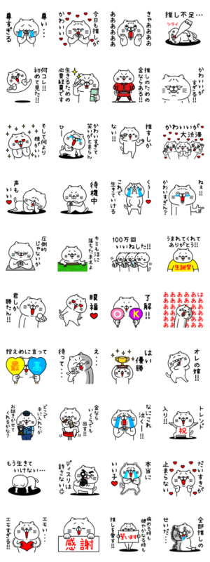 オタクの話が盛り上がるスタンプです。表情とセリフが絶妙です。