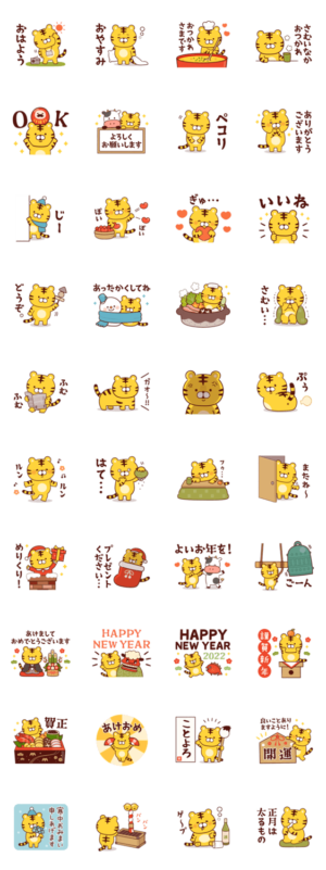 新年の挨拶に使える寅年のスタンプです。たくさんスタンプ送って明るい一年にしたいですね。