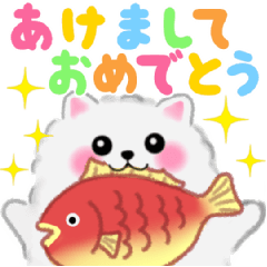 ポメラニアンの動くぽちゃん、年末年始のスタンプです( ^)o(^ )