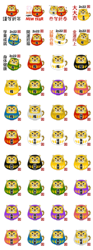 干支だるま 寅 2022 全10色 スタンプ画像一覧