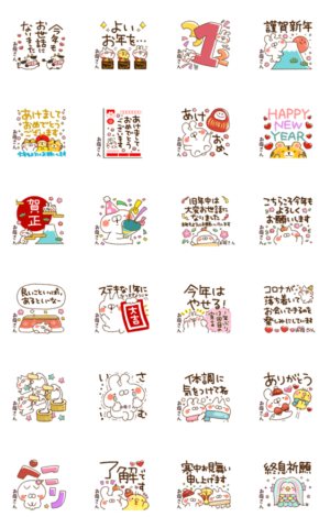 【お母さん】専用74<正月2022年ねこうさ> スタンプ情報