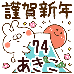 あきこ/アキコ専用74。お正月/年末年始/あけおめ/年賀状/動く/かわいい/正月/虎/ねことうさぎの名前スタンプ/山田まぽん作。※他の名前は「○○専用74」で検索★