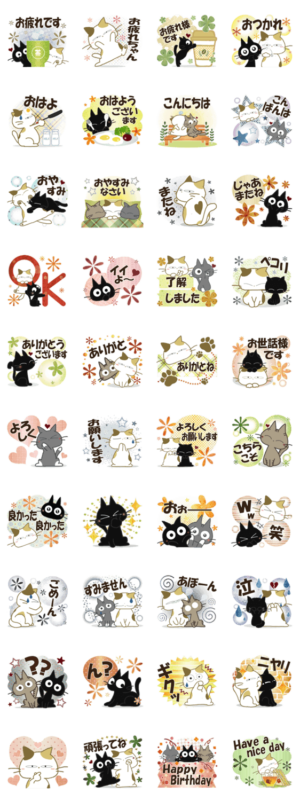 黒ねこちゃん達とみけさんのコラボ日常スタンプです!まちゃの部屋 より発売