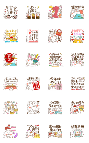 【ちーちゃん】専用74<正月2022年ねこうさ> スタンプ情報