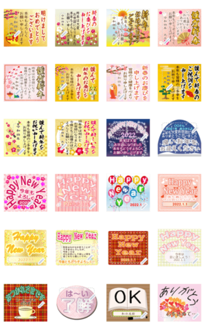 美しくフォーマルなデザインのお正月、年末年始に使える年賀状みたいなスタンプ。友人や目上の方など使いやすい。2022年を自由に変更してずっと使える。あけおめ2021復刻版 現在この商品は一部のスマートフォン版LINE 10.3.0以上のトークルームでのみ使用できます。動作環境の最新情報はヘルプをご確認ください。mikance より発売