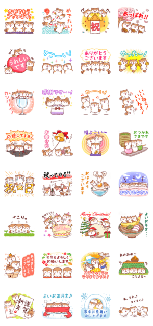 しばいぬたちが、お祝いや感謝の気持ちなどを伝えてくれるかわいいスタンプ!クリスマス、年末・年始、新年、正月もバッチリ☆春、夏、秋、冬、朝・夕・夜、毎日使えます♪ジグノシステムジャパン より発売