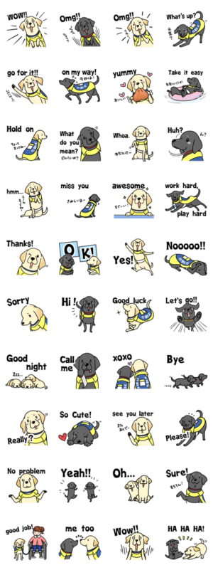 介助犬かわいいラブちゃんスタンプ2英語版のダウンロードはこちら↓