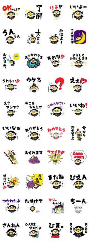 コロナ収束を願って企画した『毎日投稿アマビエチャレンジ』の中で生まれたアマビエちゃんのスタンプです。コロナに負けず ガンバロ ガンバル!