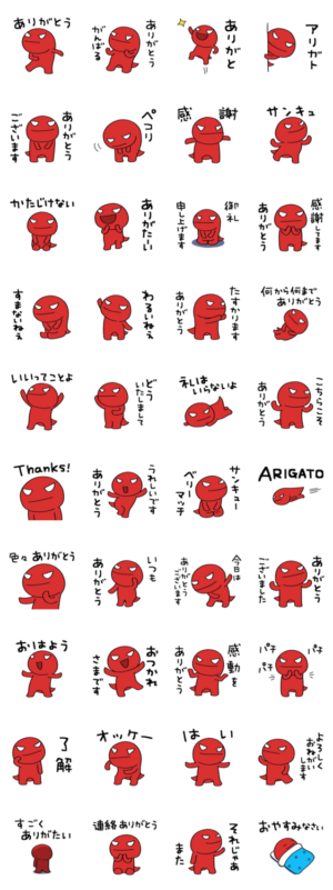 ありがとう☆赤いかいじゅうくん スタンプ画像一覧