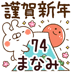 まなみ/マナミ専用74。お正月/年末年始/あけおめ/年賀状/動く/かわいい/正月/虎/ねことうさぎの名前スタンプ/山田まぽん作。※他の名前は「○○専用74」で検索★