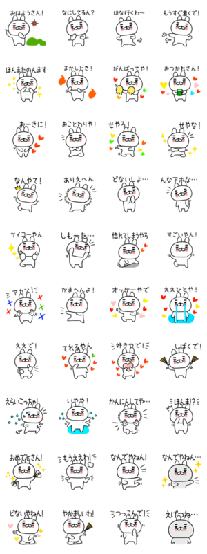 関西弁スタンプ★うさぎスタンプ◆100 スタンプ画像一覧