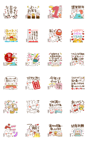 【みゆき】専用74<正月2022年ねこうさ> スタンプ画像一覧
