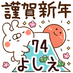 よしえ/ヨシエ専用74。お正月/年末年始/あけおめ/年賀状/動く/かわいい/正月/虎/ねことうさぎの名前スタンプ/山田まぽん作。※他の名前は「○○専用74」で検索★