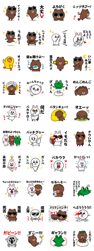 ブラウン/コニー/LINEキャラクターズ/昭和/死語/平成/ダジャレ/オヤジギャク/80年代/サリー/ムーン/黄金時代/バブル/プロデューサー/流行語/流行り/ナウい/レナード ※BROWN & FRIENDS をみんなでつくろう!キャンペーン参加スタンプです4A-Studio(よんえーすたじお) より発売