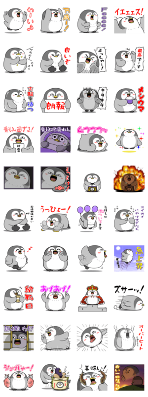 激しく喜びを表現したい、喜びにも笑いがほしい。そんな時に便利なスタンプです。ペンギン/デブ/使いやすい/嬉しい/感情/太い/ネタまさひさ工房 より発売
