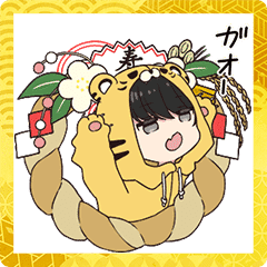 年末年始で使えるゆるだらくんスタンプ。いつもの犬パーカーに加えて、今度はトラにも変身したよ。がお~ジョイネット より発売