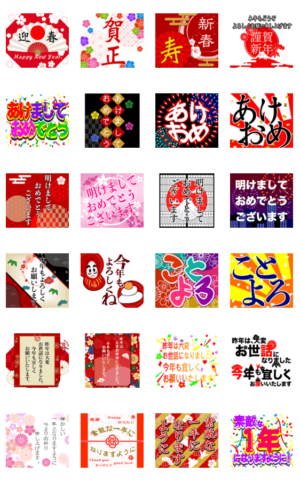 縁起のいい感じが伝わるスタンプです。新年に是非使いたいですね。