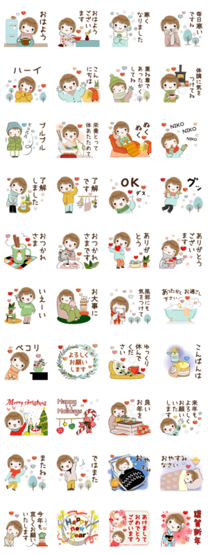 いよいよ真冬の季節ですね。寒い冬でも楽しく過ごしたい使いやすいスタンプです。taemama より発売
