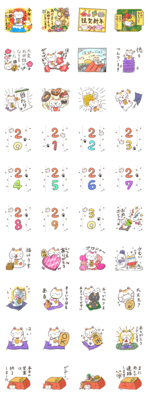 毎年使える♪招き猫の大福ちゃんお正月再販 スタンプ画像一覧