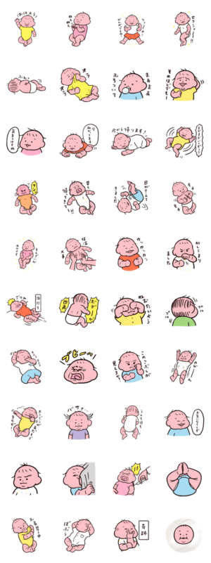 赤ちゃんの仕草をスタンプにしました。 生まれたて=毎日が新しい日々。 好評につき第6弾です。OONOTARO より発売