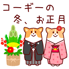 かわいい犬のフラッフィーコーギー、トライカラーコーギー、ブラックタン、黒コギ。年末年始、お正月、冬シーズンに活躍します。毎年使えます。日常会話。