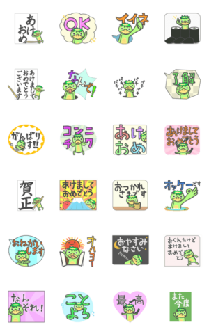 動くカッパのあけおめ ふきだしと日常 年始 スタンプ画像一覧
