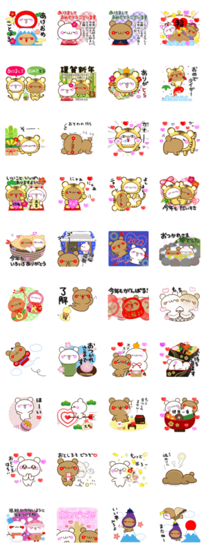 2022寅年、今年もらぶらぶなくまくまのスタンプです。好きな人と年末年始を楽しもう。今年の干支の寅さんコスプレ多め。