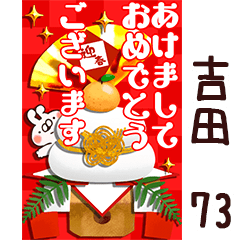 吉田専用73。正月/お正月/年賀状/動く/敬語/あけおめ/年末年始/喪中/ねことうさぎの名前スタンプ/山田まぽん作。※他の名前は「○○専用73」で検索★山田まぽん 新 名前スタンプ より発売